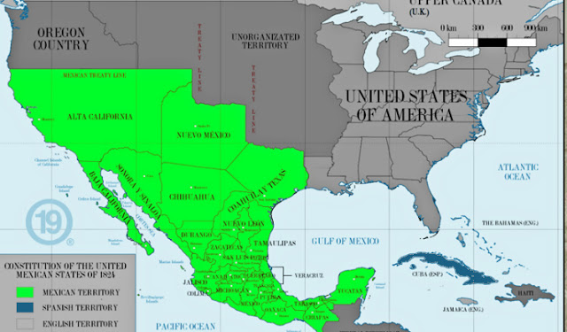 ![]() ![]() The images above are the continent of "L' Amerique" mapped by by Jean (aka Robert) Janvier, a Paris-based cartographer active in the 18th century. By the late 18th century Janvier was awarded the title of "Geographe Avec Privilege du Roi" and this designation appears on these maps. Janvier worked with many of the most prominent French, English and Italian map publishers of his day. The map at the top was completed and sold in the 1760's before the Revolutionary War, the one at the bottom in 1790, during the first year of the United States government. From the maps one can see that to the west of the continent of "L' Amerique" is the "Mer du Sud ou Mer Pacificque." While Janvier didn't see a need to provide the name for the "Mer du Nord" (Atlantic Ocean) on the map, he found it necessary to provide the name of the Pacific Ocean. That was because in the 18th Century the Pacific Ocean was an unknown curiosity and irrelevant to most Europeans other than the Spanish. (From this point on, Spain and Spanish will be emphasized to help the reader understand that Britain and English were unimportant to the Pacific Coast of North America.) Effectively, the Pacific Ocean did not exist for Europeans prior to the 16th Century. And in the 16th, 17th, and 18th Centuries (1500's through the 1700's), it was not important to Americans as well as to most Europeans other than the Spanish. Though the peoples of Asia and Oceania have traveled the Pacific Ocean since prehistoric times, the eastern Pacific was first sighted by Europeans in the early 16th century when Spanish explorer Vasco Núñez de Balboa crossed the Isthmus of Panama in 1513 and discovered the great "southern sea" which he named Mar del Sur (in Spanish), a designation indicated on the maps above. However, it was Portuguese explorer Ferdinand Magellan who in 1521, during the his circumnavigation of the world on behalf of Spain, upon encountering favorable winds named it Mar Pacífico, which in both Portuguese and Spanish means "peaceful sea." The word "pacific" derives from the Latin pācificus meaning "peace-making." During that 1521 voyage, Magellan "discovered" the Philippines and claimed them for Spain. Also in 1521 the Spanish conquered the Aztec Empire and, following some additional conquests, in 1535 Spain created the Viceroyalty of New Spain. In fact, in 1789 when the U.S. Constitution became effective, contrary to the 1790 map above created by a French citizen, the map of New Spain looked like this... ![]() On October 1, 1800, First Consul of the Republic of France Napoleon Bonaparte, reacquired Louisiana from Spain by the secret Treaty of San Ildefonso. To the distress of the United States, Napoleon held title to the Mississippi River and the port of New Orleans. In 1803 with some sense of urgency, President Thomas Jefferson and Secretary of State James Madison secured the Louisiana Purchase in the face of considerable opposition. As explained in part in Wikipedia: Both Federalists and Jeffersonians were concerned over thepurchase's constitutionality. Many members of the House of Representatives opposed the purchase. Majority Leader John Randolph led the opposition. The House called for a vote to deny the request for the purchase, but it failed by two votes, 59–57....Slaveholder President Thomas Jefferson placed a special importance on declaring U.S. total sovereignty over this land occupied for centuries by the many different indigenous Native American communities. Immediately after the Louisiana Purchase he commissioned fellow slaveholders Meriwether Lewis and William Clark to carry out the Lewis and Clark Expedition; the three year Corps of Discovery Expedition (as it was known then) crossed the Transcontinental Divide of the Rocky Mountains, camping near the Pacific Ocean in the winter of 1805-1806. It should be noted that William Clark went on in official positions to implement President Andrew Jackson's Indian removal (aka genocide) policy, even issuing an extermination order that read: The faithless and treacherous character of those at the head of our Indian enemies appear now to be so well known and understood, as to permit the expression of the hope, that their wanton cruelties will eventually result in their own destruction; and aa they have afforded sufficient evidence not only of their entire disregard of Treaties, but also of their deep-rooted hostility in shedding the blood of our women and children, a War of Extermination should be waged against them. The honor and respectability of the Government requires this: - the peace and quiet of the frontier, the lives and safety of its inhabitants demand it.At that time there were still conflicting claims on the area designated as "Oregon Country." However, despite having fought the Revolutionary War and the War of 1812 against England, the area of what are now the states of Oregon and Washington were included in the Oregon Territory, initially defined by the Treaty of 1818 that set up a "joint occupation" between the United States and the British over the region. In 1848 the Oregon Territory became an organized incorporated territory of the United States. The Washington Territory was split off in 1853. After a protracted struggle (1810–21) for independence, New Spain - including the current U.S. states of California, Nevada, Utah, Arizona, New Mexico, Texas, and parts of Oklahoma, Kansas, Colorado and Wyoming - became the sovereign nation of Mexico, with the signing of the Treaty of Córdoba. (At this point, terms related to "Mexico" will also be emphasized to help place that country's context in U.S. history.) ![]() California was part of Mexico for 27 years until the Mexican-American War beginning on May 13, 1846, ending with the Treaty of Guadalupe Hidalgo in 1848. California was admitted to the Union as a state in 1850. But it should be noted that prior to the War, Pío de Jesús Pico IV, the last governor of Alta California, as with a significant number 